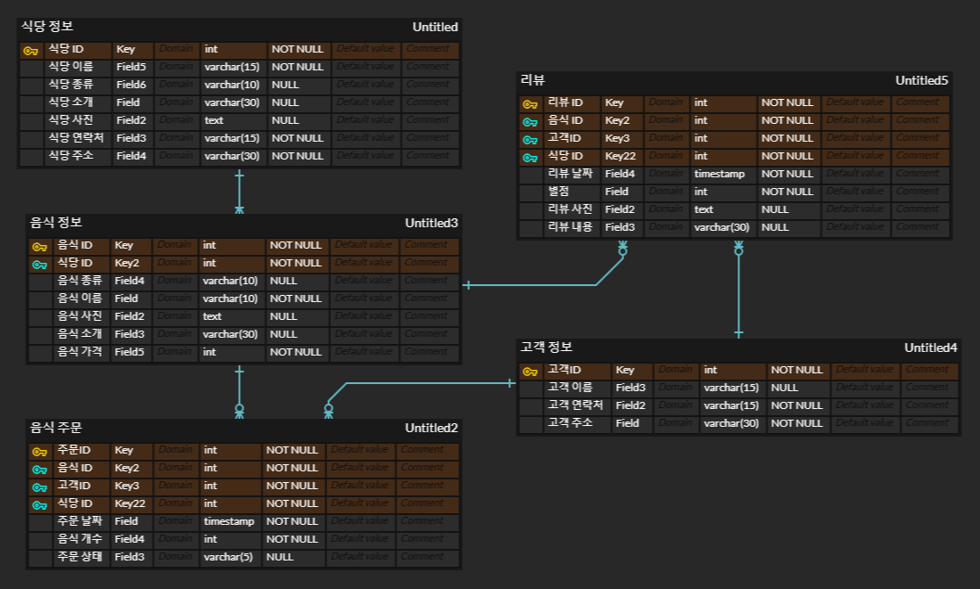 - 식당 ID, 음식 ID, 고객 ID, 주문 ID