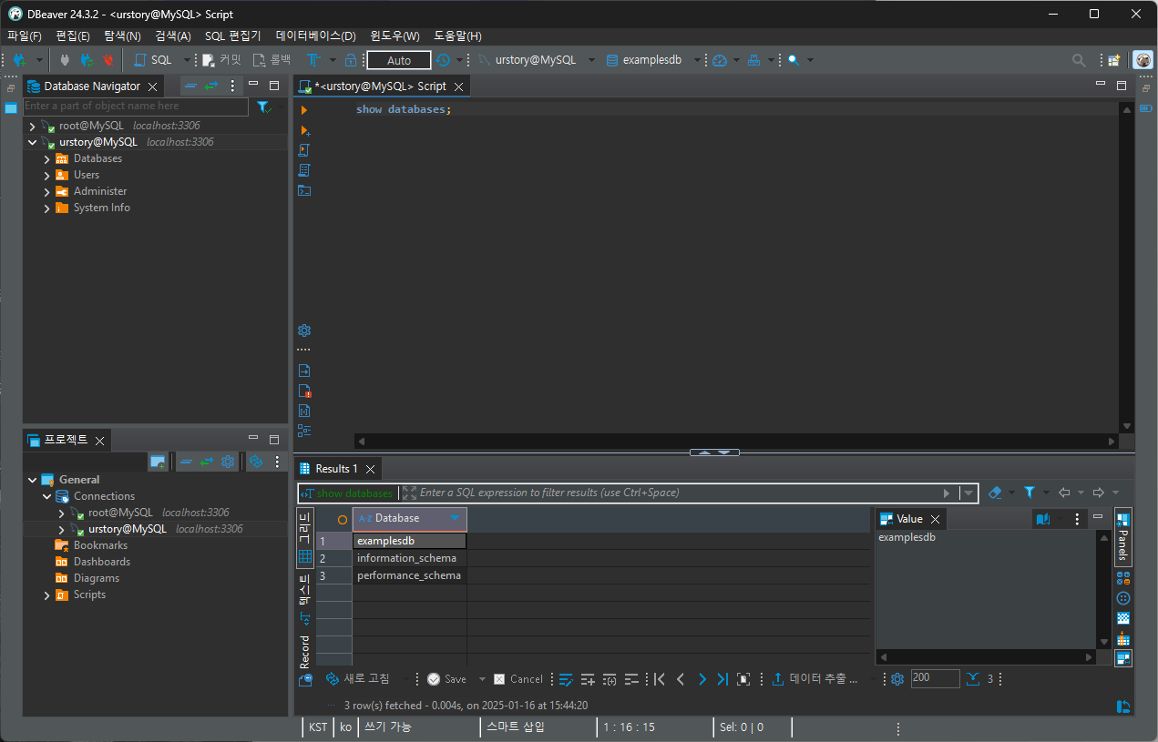3-1-1. 데이터베이스 생성, 조회, 사용, 삭제
