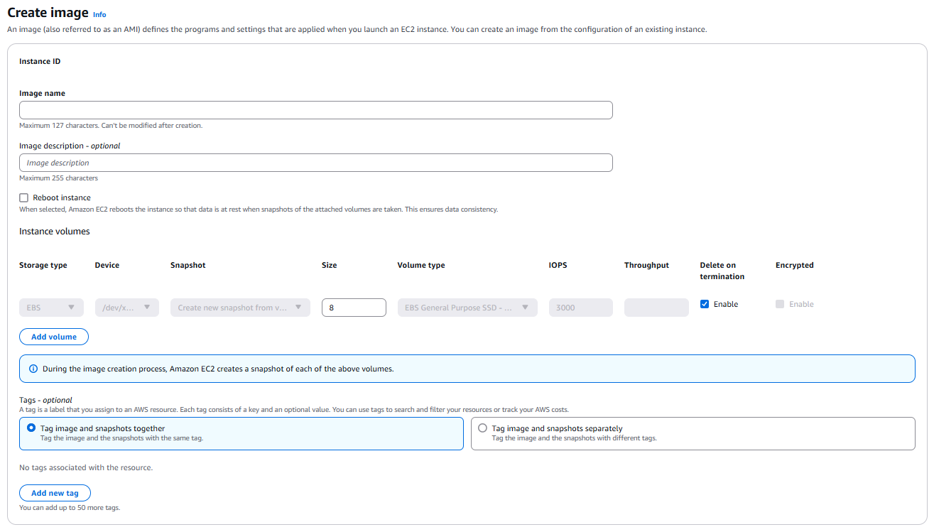 - EC2 인스턴스 설정을 이미지로 저장하여 나중에 동일한 인스턴스를 생성할 수 있도록 한다.