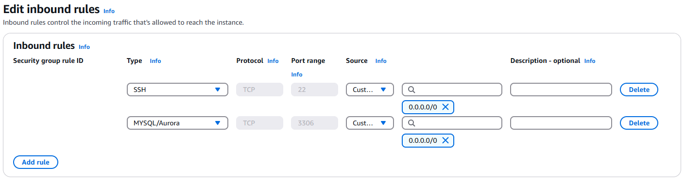 - Security Group Inbound rules 설정