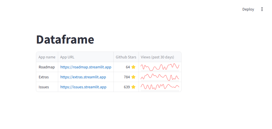 "url": ["https://roadmap.streamlit.app", "https://extras.streamlit.app", "https://issues.streamlit.app"],