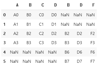 df = pd.concat([df1, df2], axis=1).reindex([0, 1, 2, 3, 4, 5])