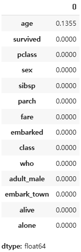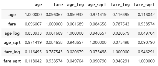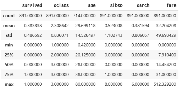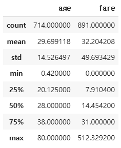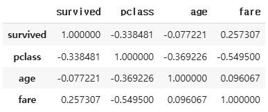 # Index(['survived', 'pclass', 'age', 'fare'], dtype='object')