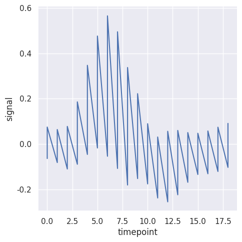 sns.relplot(data=fmri, x="timepoint", y="signal", kind="line")