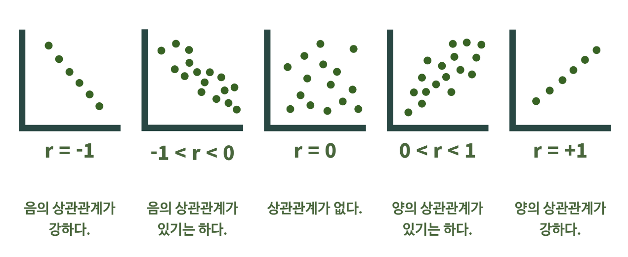 - 상관계수가 0에 가까울수록 상관관계가 없다.
