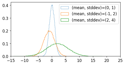 # b는 평균과 표준편차가 각각 -1,2인 정규분포의 난수 100000개
