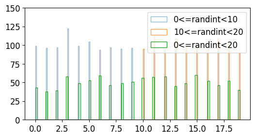 plt.hist(a, bins=100, density=False, alpha=0.5, histtype='step', label='0<=randint<10')