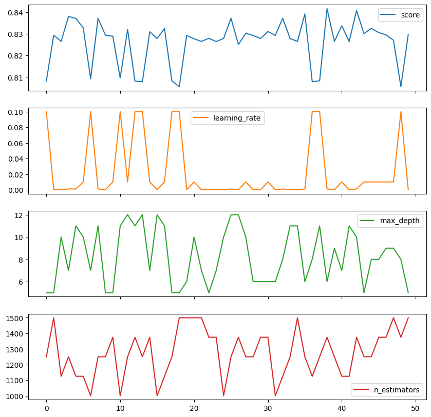 columns=['score', 'learning_rate', 'max_depth', 'n_estimators'])