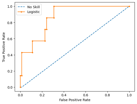 plot_roc_curve(testy, naive_probs, model_probs, clf_name='Logistic')