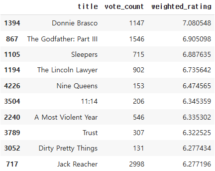 return df.iloc[similar_indexes].sort_values('weighted_rating', ascending=False)[:top_n]