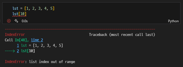 Index Error는 인덱스 범위를 벗어나는 경우에 발생하는 에러이다.