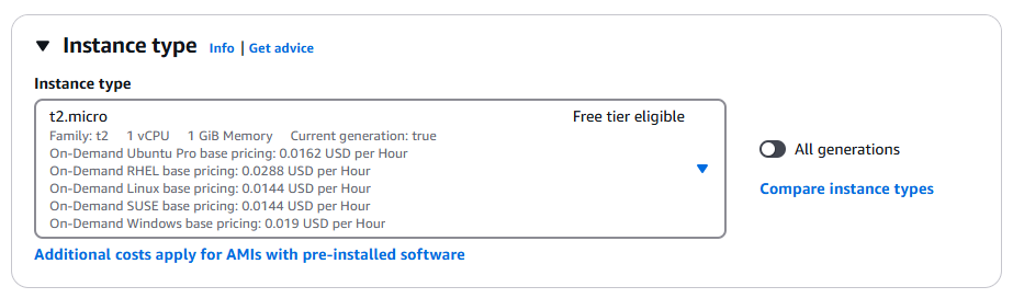 - 인스턴스 타입을 지정한다.