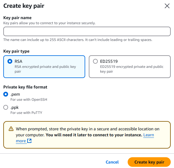 - Key Pair를 생성 또는 선택한다.