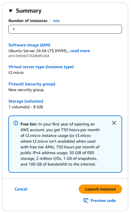- 설정한 항목을 확인한 후, 인스턴스를 생성한다.